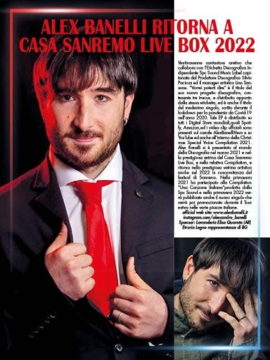 A distanza di tre anni dalla sua ultima partecipazione, l’11 febbraio del 2025 Alex Banelli, ha fatto ritorno nella città dei fiori, per prendere parte all’ Evento esclusivo del Live Box nella prestigiosa sede di Casa Sanremo, il Palafiori, all’interno dello spazio “Web Music Promotion” in partnership con il Manager Artistico Lino