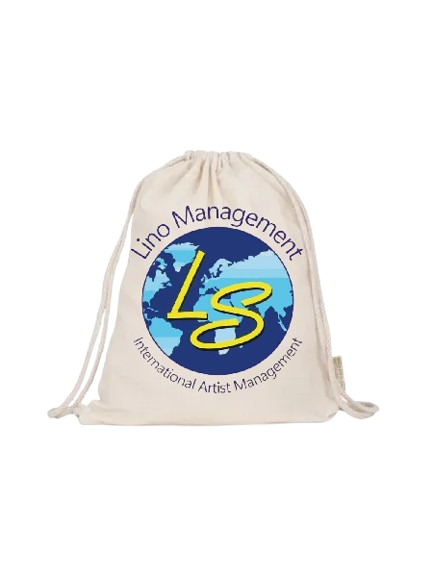 - 1 Sacca porta oggetti con elastici contenente 1 penna con nome artista e contatto telefonico o sito web personale + 1 portachiavi con foto artista + 1 laccetto personalizzato con nome artista e riferimenti del proprio management.